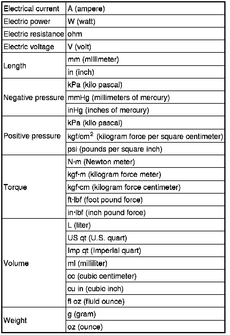 - All numerical values in this information are based on SI units. Numbers shown in conventional units are converted from these values.