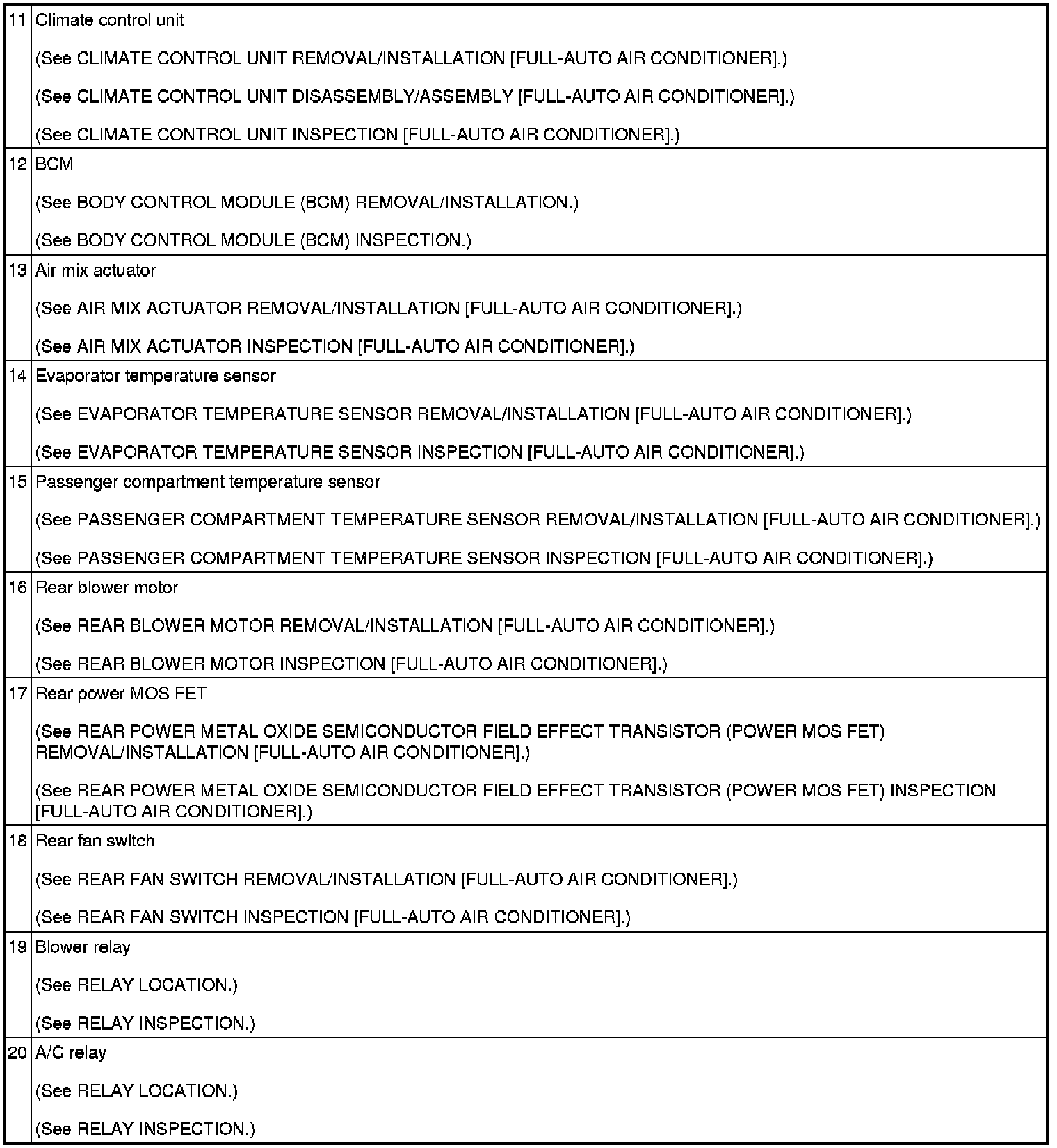 HVAC CONTROL SYSTEM LOCATION INDEX [FULL-AUTO AIR CONDITIONER]