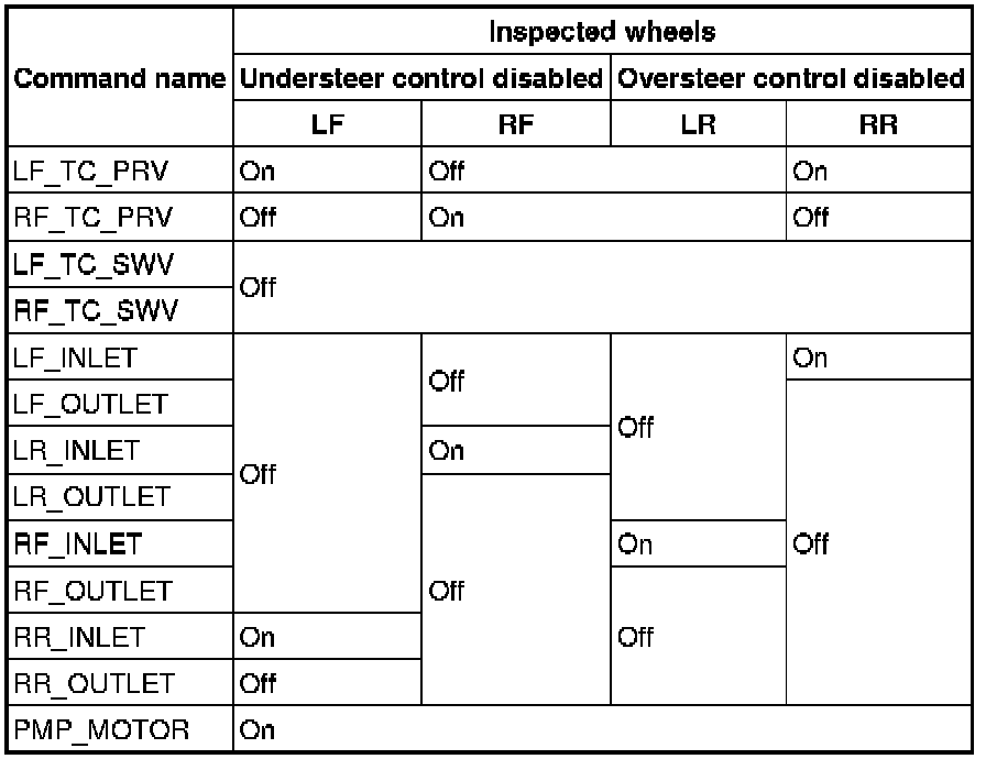 - When operating the solenoid valve and pump motor using the active command mode, make sure to keep the operation time within 2 s to prevent damaging the DSC HU/CM.