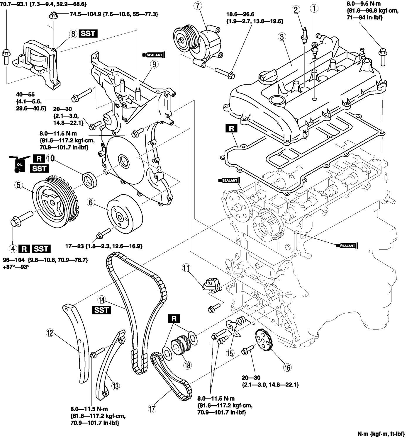 - Install the engine front cover before the applied silicone sealant starts to harden.