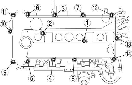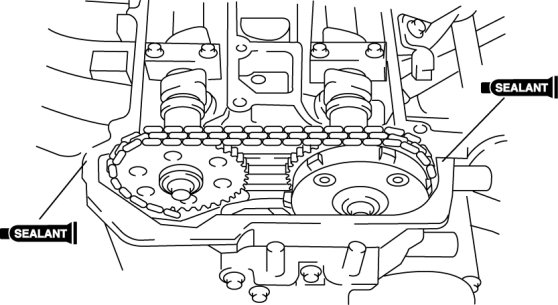 - Install the cylinder head cover before the applied silicone sealant starts to harden.
