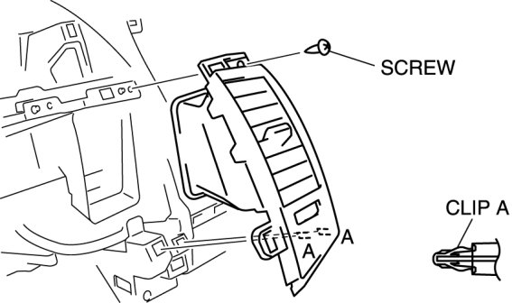 5. Pull the center ventilator grille outward and detach clips A.