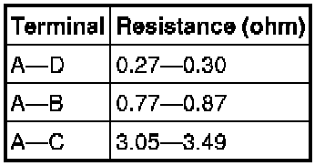 Verify that the resistance between the resistor terminals is as shown in the table.