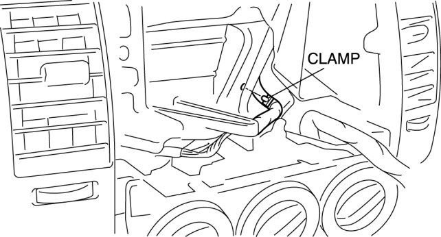 6. Remove the wire clamp with air mix wire and airflow mode wire from the A/C unit.