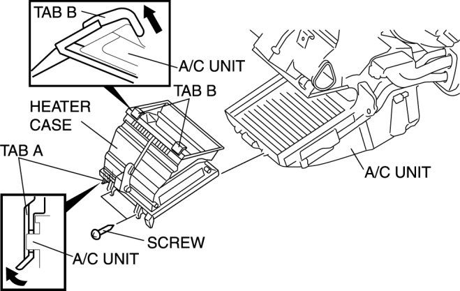 - Pull up tabs B in the direction shown by the arrow in the figure and remove it from the A/C unit.