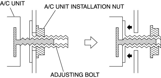 2. Tighten the A/C unit adjusting bolt until it lightly touches the A/C unit.