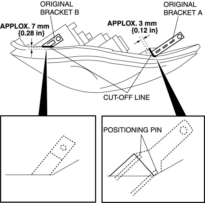 1. Cut off the front combination light brackets at the locations shown in the figure.