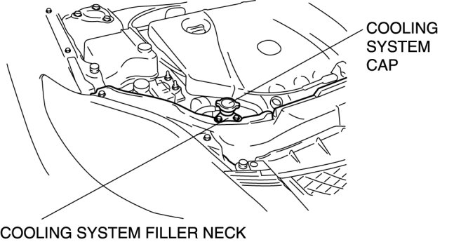 10. Refill the coolant from the cooling system filler neck until it is close to the top of the cooling system filler neck.