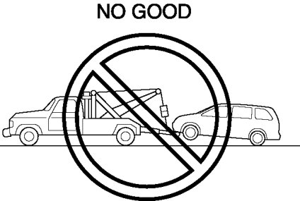 - Do not tow the vehicle pointed backward with driving wheels on the ground. This may cause internal damage to the transaxle.