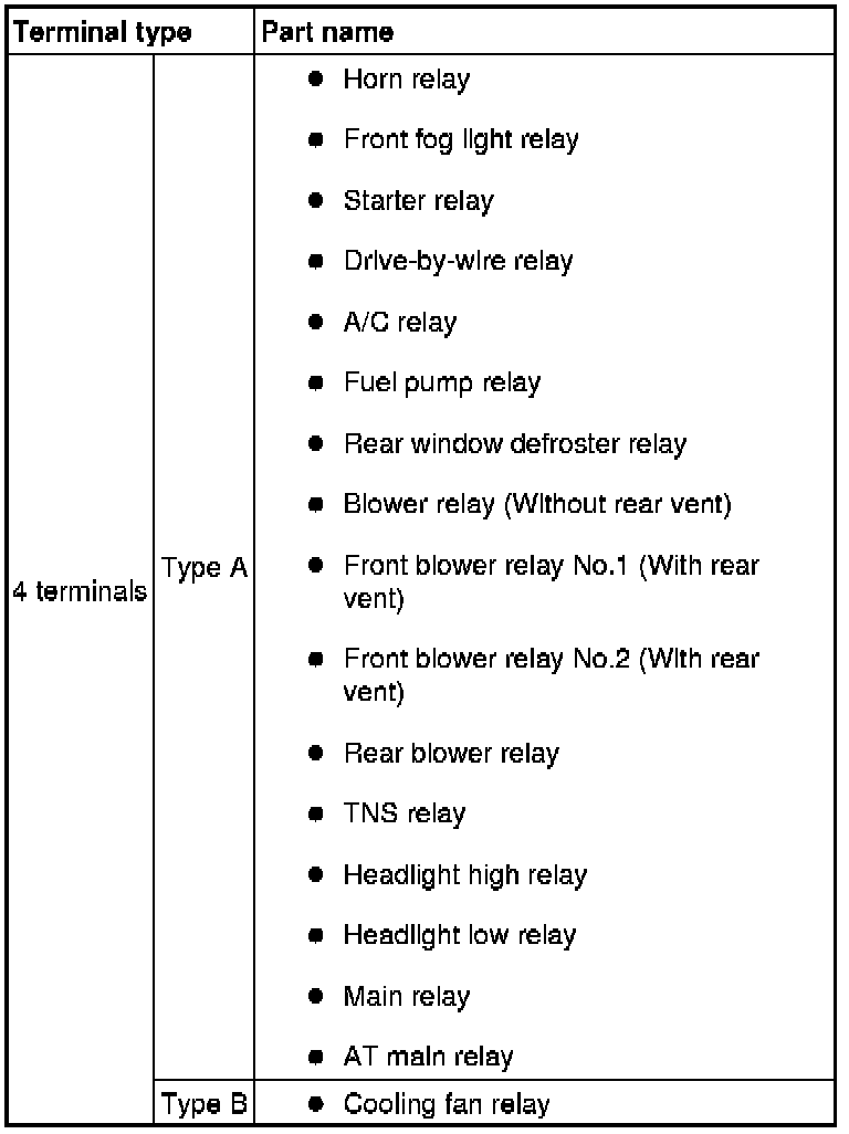 - If not as indicated in the table, replace the relay.