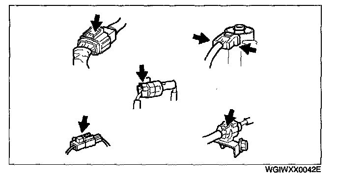 - Inspect the terminals of waterproof connectors from the connector side since they cannot be accessed from the wiring harness side.