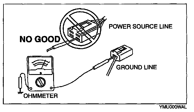 CAUTION: Do not connect the ohmmeter to any circuit where voltage is applied. This will damage the ohmmeter.