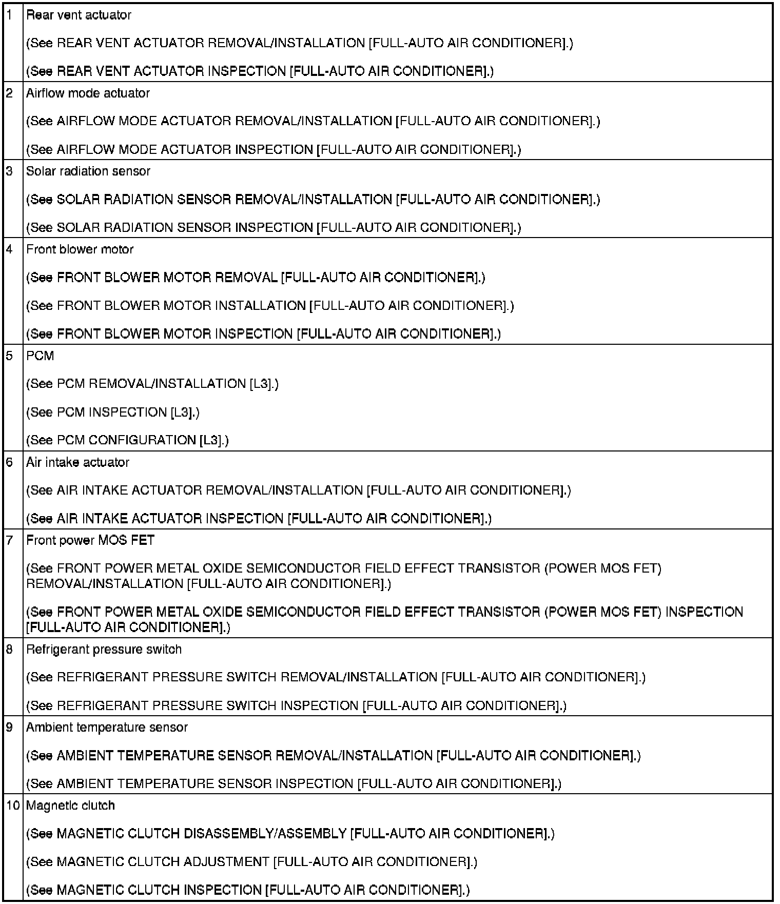 HVAC CONTROL SYSTEM LOCATION INDEX [FULL-AUTO AIR CONDITIONER]