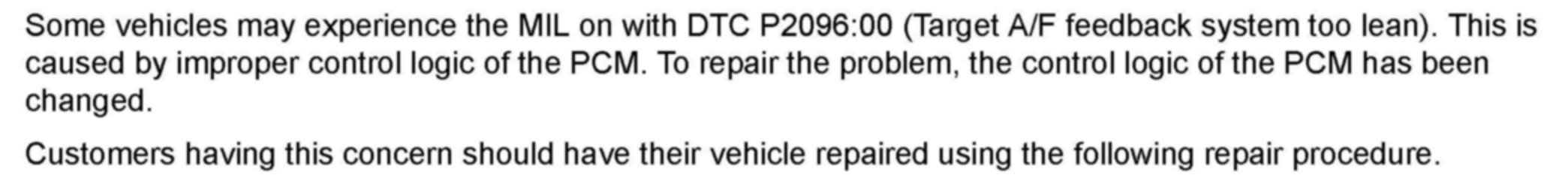 Subject: MIL ON WITH DTC P2096:00