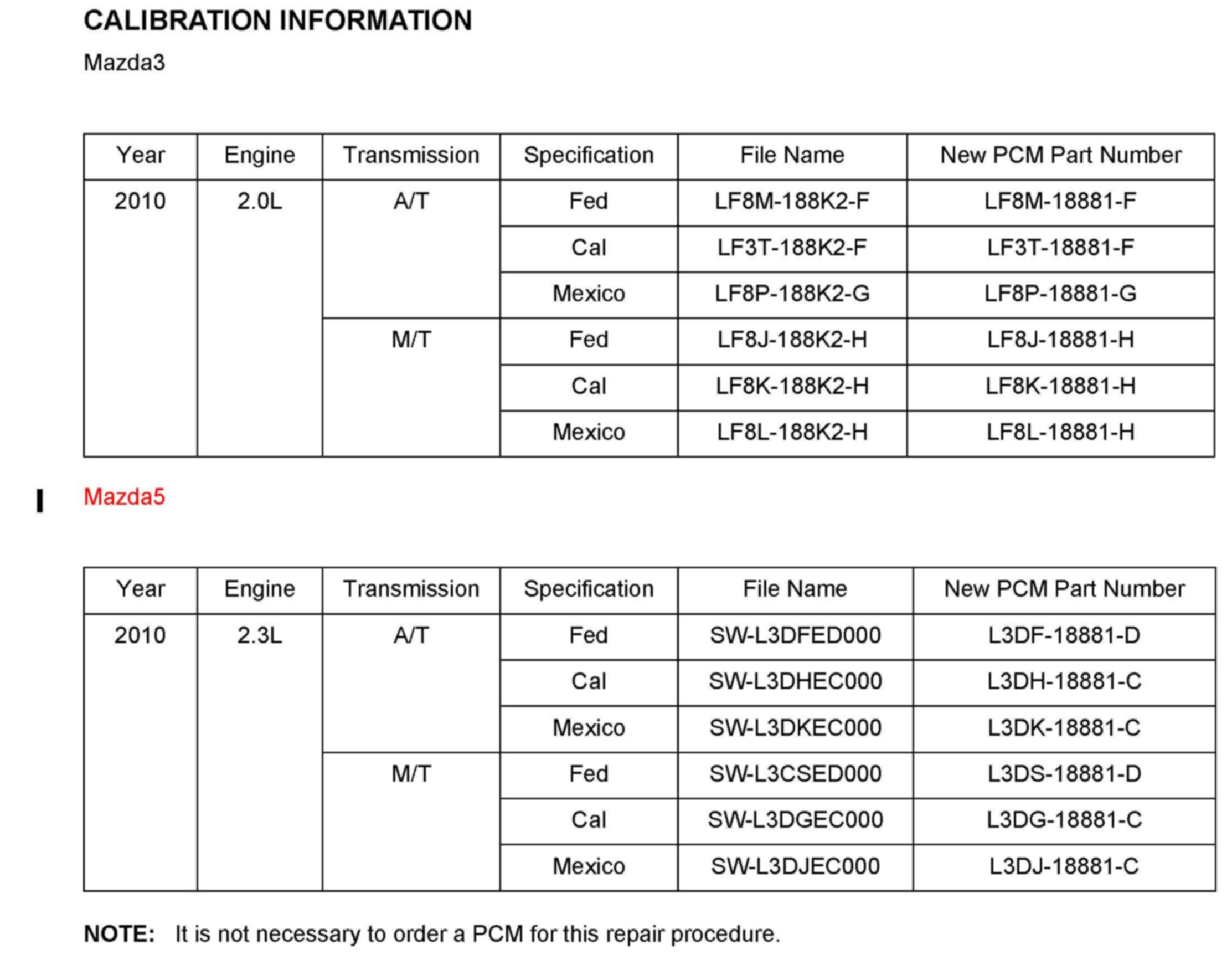 CALIBRATION INFORMATION
