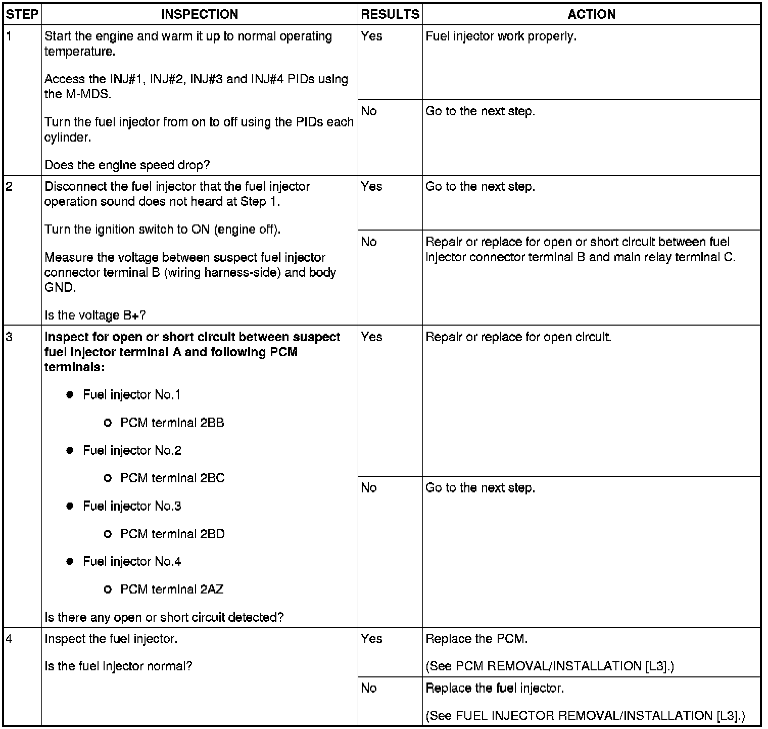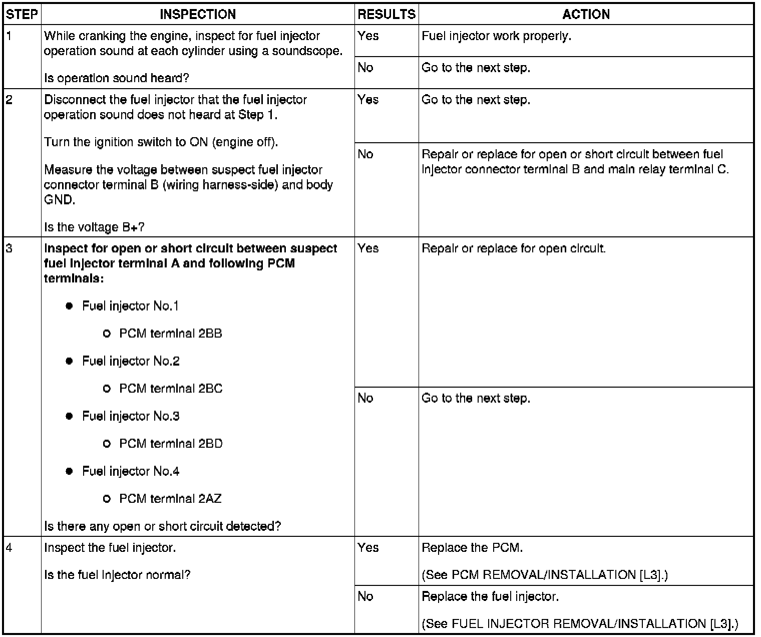 Fuel Injector Operation Inspection