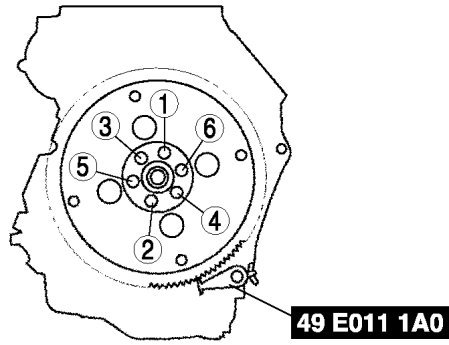 Tighten the drive plate mounting bolts in two or three steps in the order as shown in the figure.