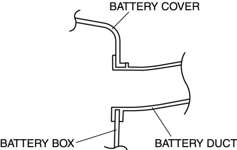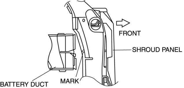 1. Match the mark of the shroud panel and notch in the battery duct, and install the battery duct to the shroud panel.
