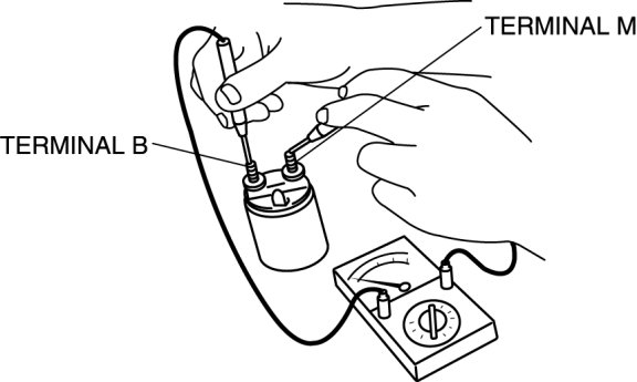 3. Verify that there is no continuity between terminals M and B using a tester.