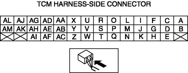 - Use the ground of terminal L and M of the TCM when measuring terminal voltage, as an error may occur when connecting the negative circuit tester to ground.