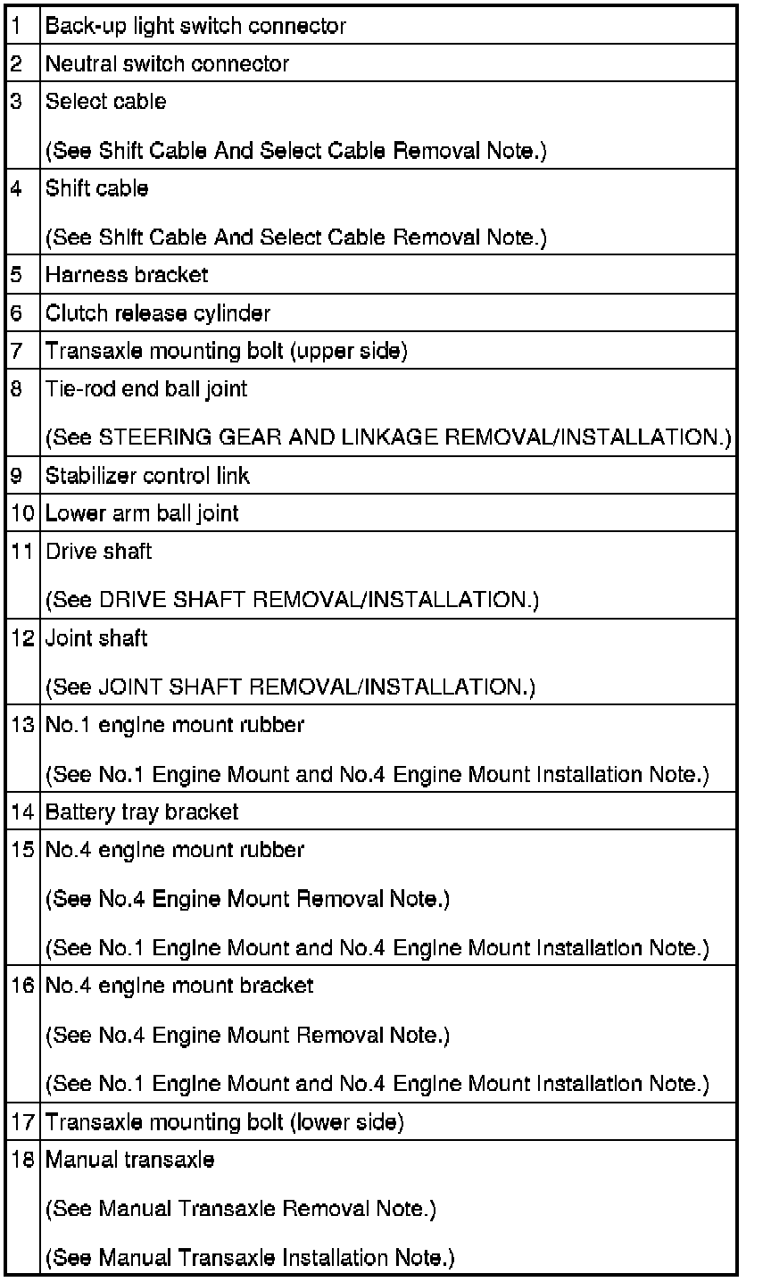 Manual Transaxle Removal Note