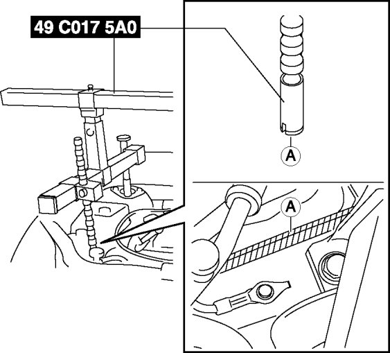 1. Adjust the SST (49 C017 5A0) so that the engine is located at the specified position.