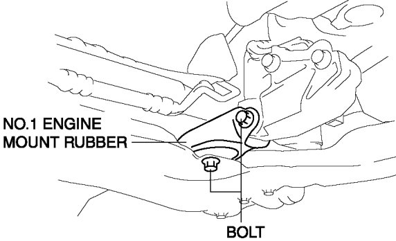 7. Tighten the No.1 engine mount rubber bolts as shown in the figure.