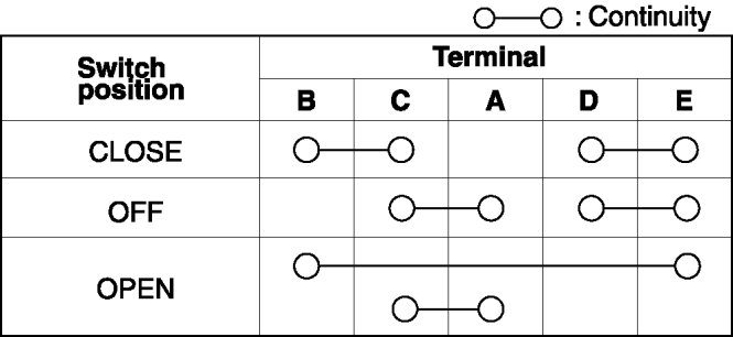 - If not as indicated in the table, replace the power window subswitch.