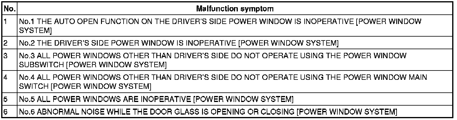 SYMPTOM TROUBLESHOOTING CHART [POWER WINDOW SYSTEM]