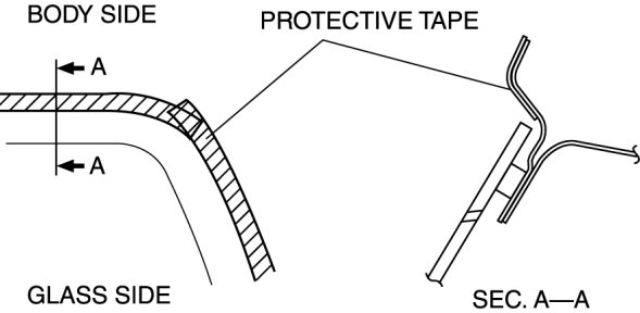 - Before removing the windshield from the body, mark the position of the windshield by affixing tape to the windshield and body panel.
