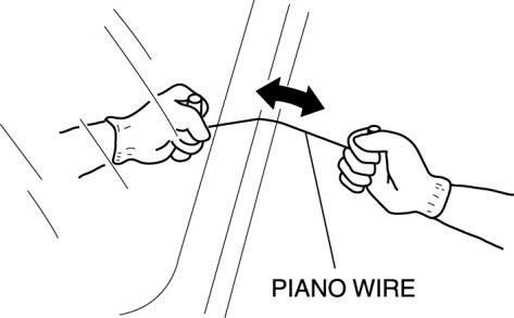 - For the areas of the sealant that are difficult to cut, use the piano wire and follow the procedure under "Reusing Windshield".