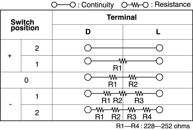 - If not as indicated in the table, replace the windshield wiper and washer switch.