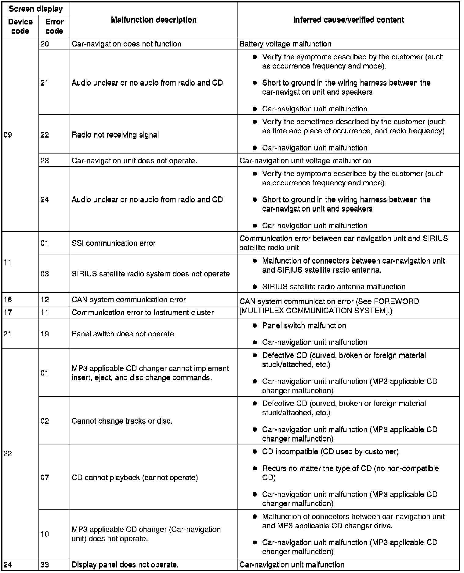 DTC TABLE [CAR-NAVIGATION SYSTEM]