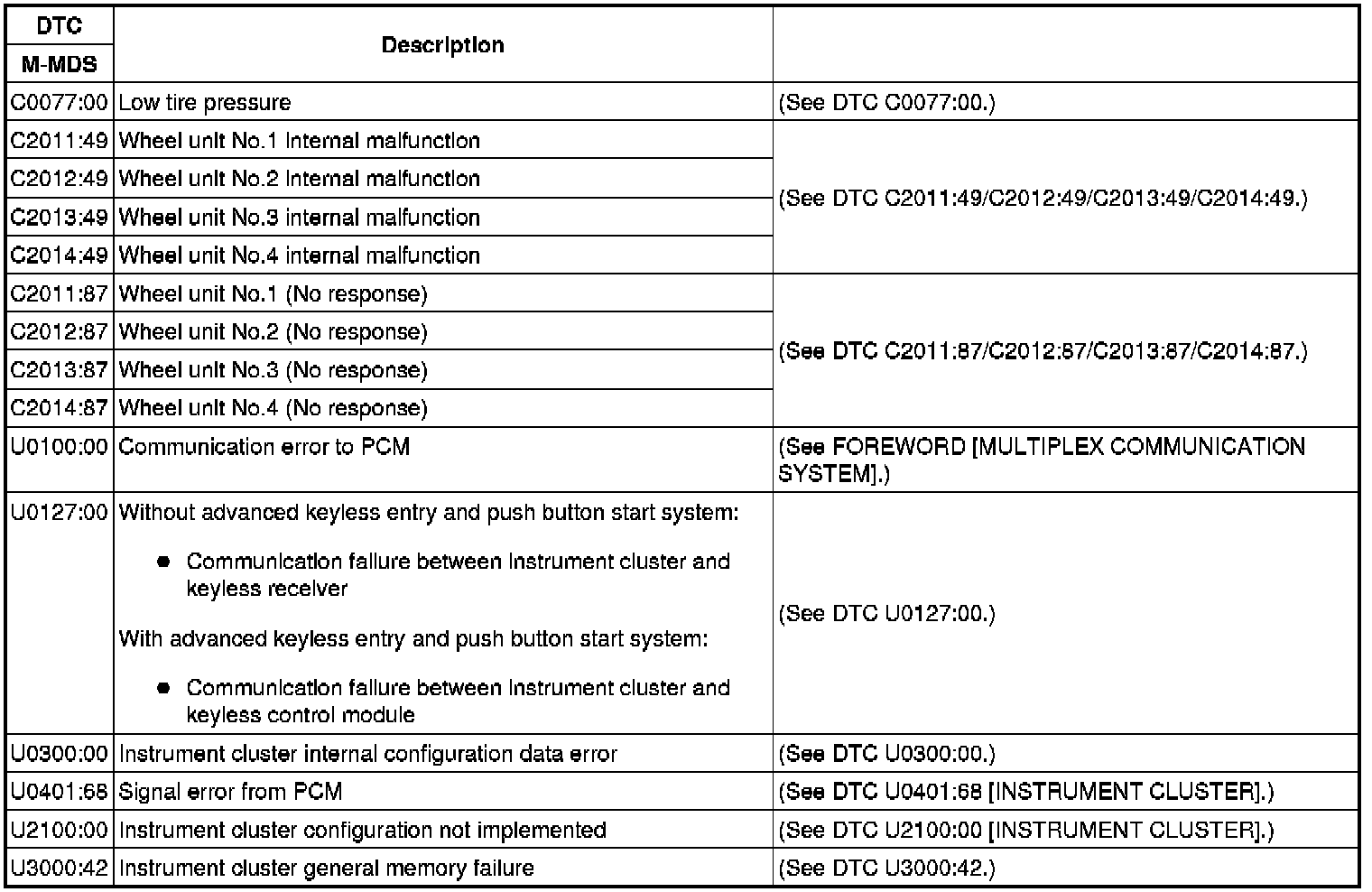 DTC Table - Tire Pressure Monitoring System (TPMS)