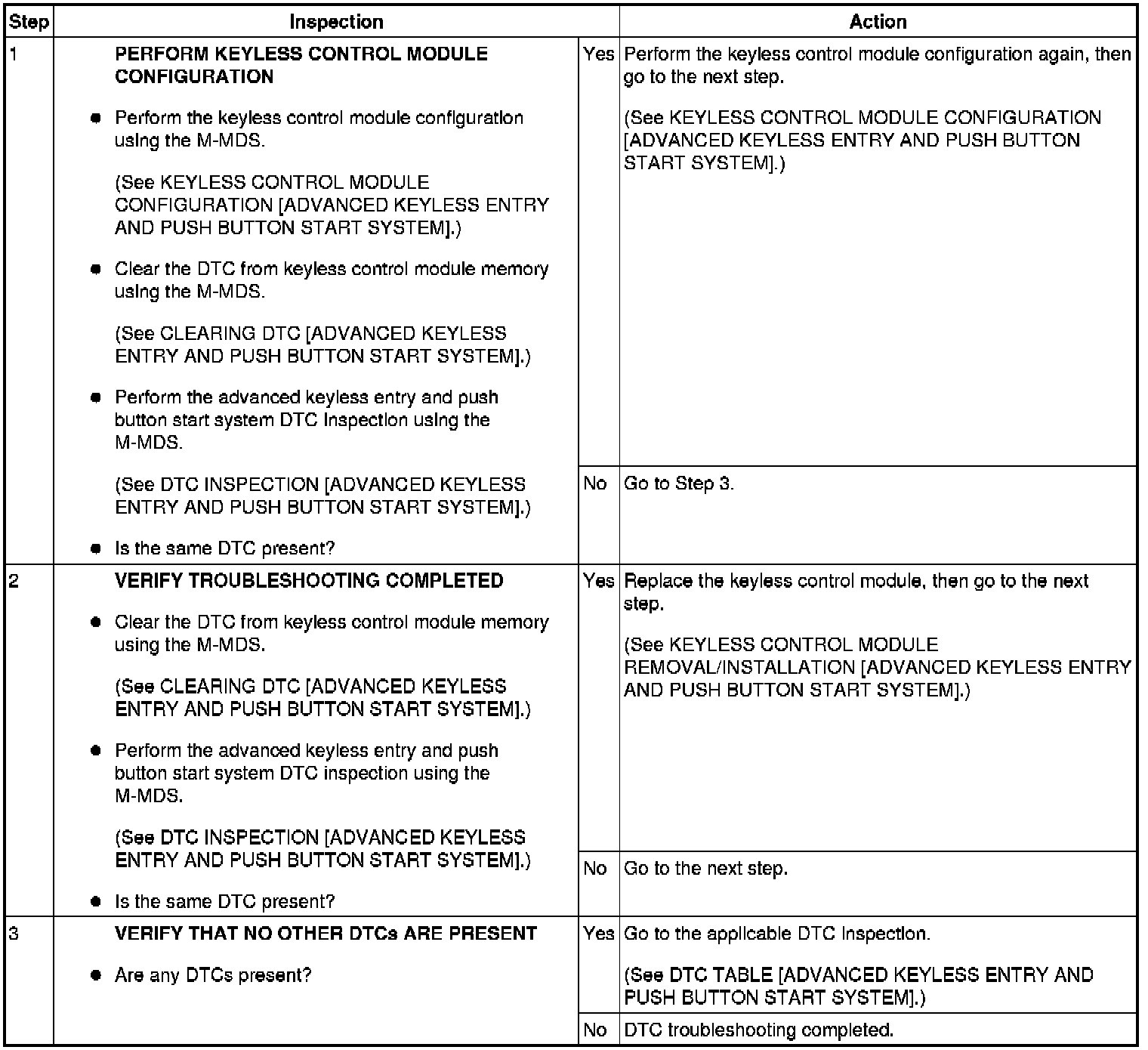 DTC U2100:00 [ADVANCED KEYLESS ENTRY AND PUSH BUTTON START SYSTEM]