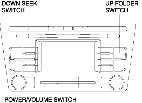 2. While pressing the POWER/VOLUME switch, simultaneously press the UP FOLDER switch and DOWN SEEK switch for 3 s or more.