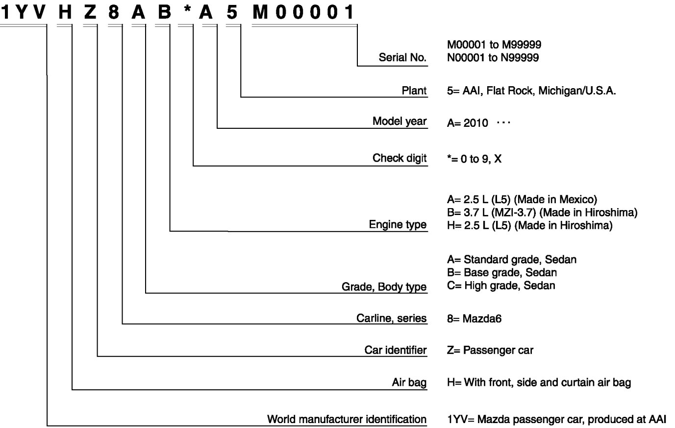 VEHICLE IDENTIFICATION NUMBER (VIN) CODE