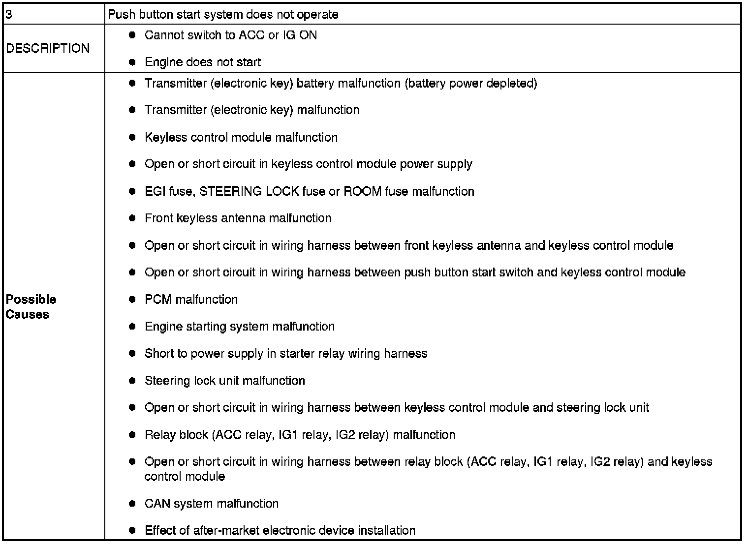 No.3 Push Button Start System Does Not Operate - Advanced Keyless Entry And Push Button Start System