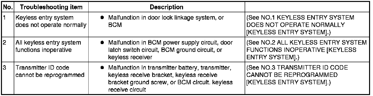 Symptom Troubleshooting Chart (Keyless Entry System):