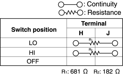 1. Inspect for continuity between the seat warmer switch terminal J, and connect terminal H using an ohmmeter.