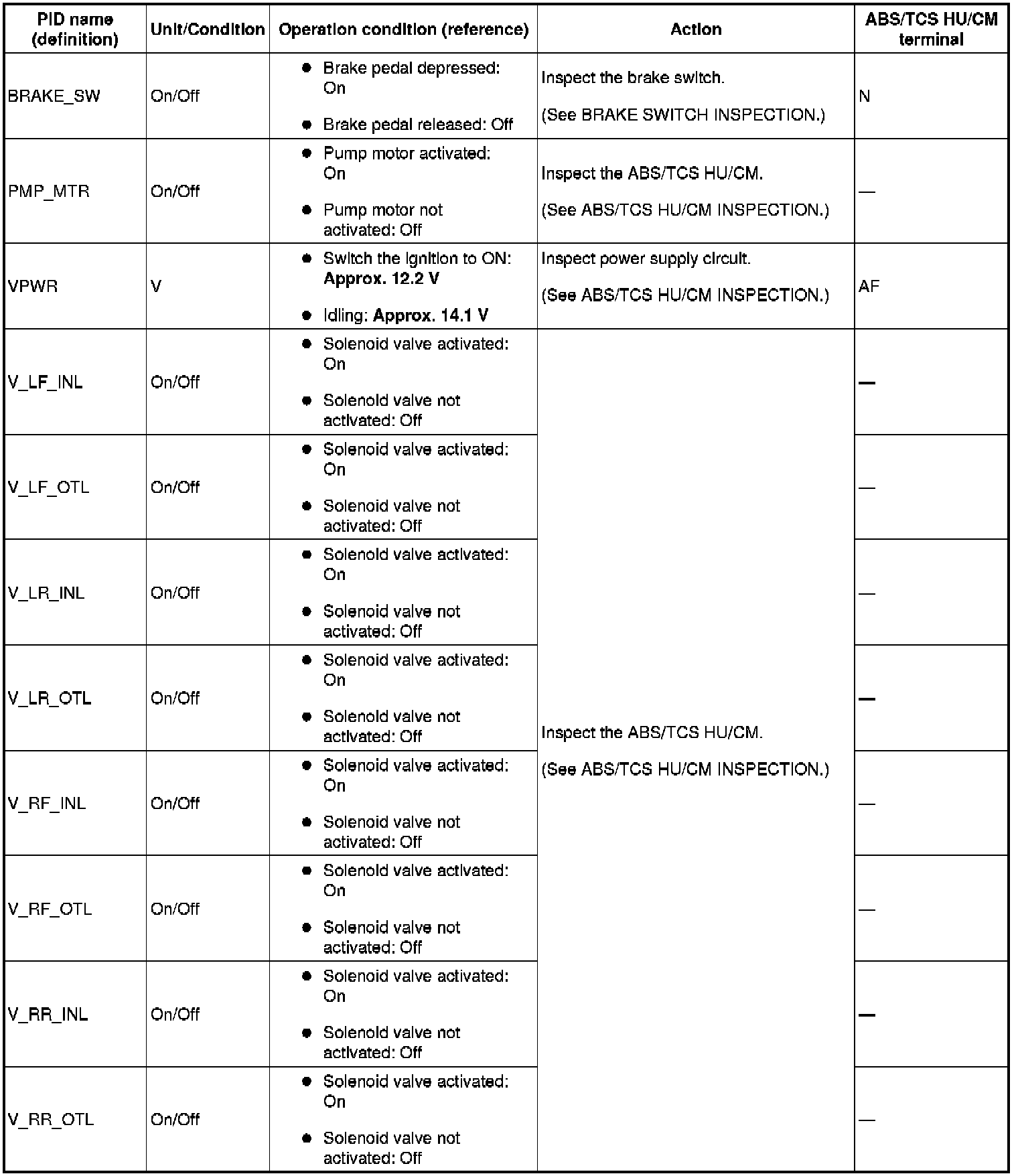ON-BOARD DIAGNOSIS [ABS/TCS]
