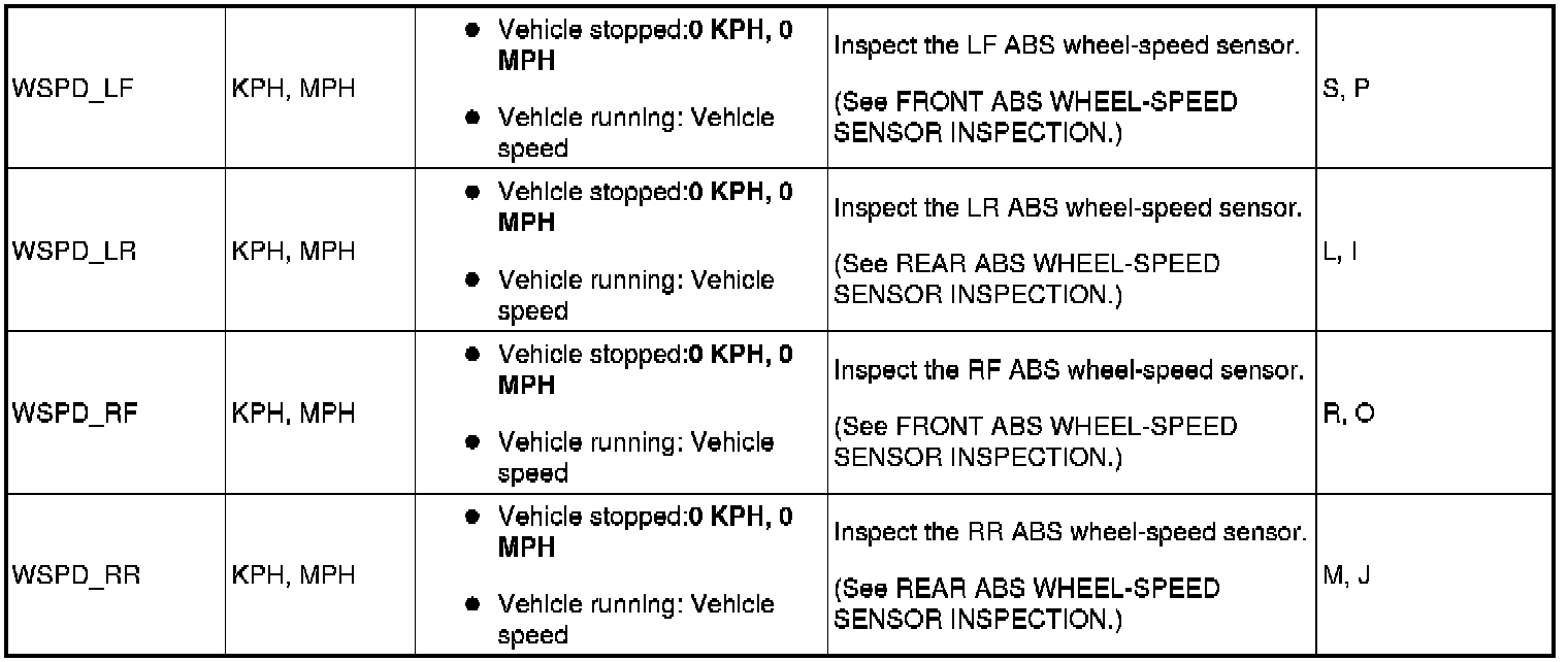 PID/DATA Monitor Table