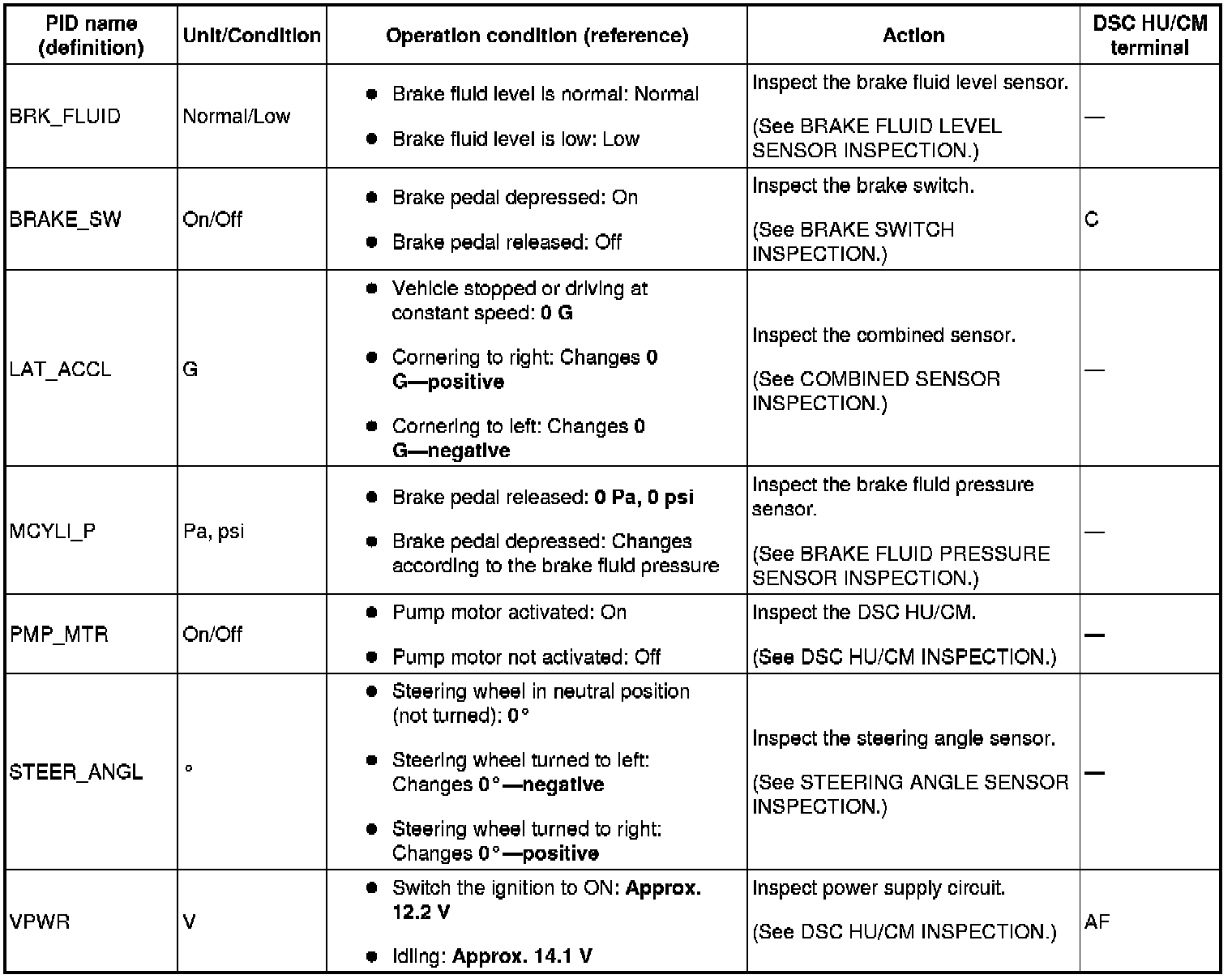 ON-BOARD DIAGNOSIS [DYNAMIC STABILITY CONTROL (DSC)]