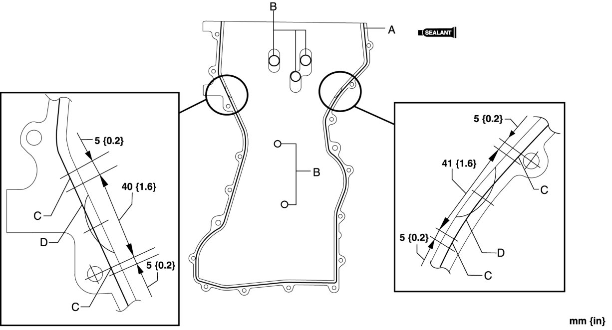 1. Apply silicone sealant to the engine front cover as shown.