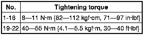 - 18-22 Nm {1.9-2.2 kgf-m, 14-16 ft-lbf}