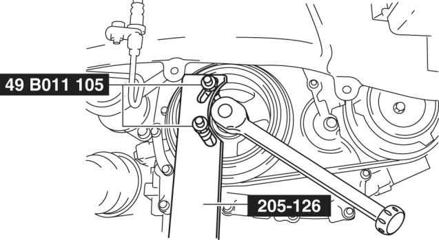 4. Hold the crankshaft pulley using the SSTs.