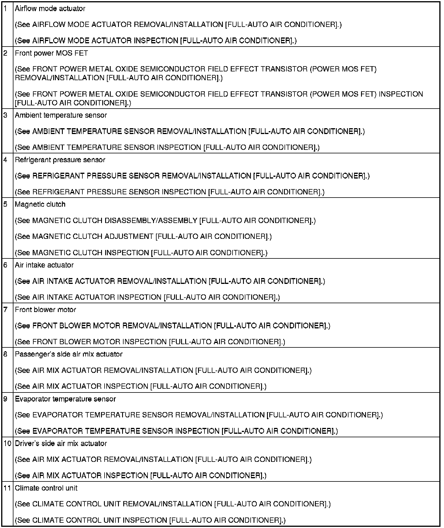 HVAC CONTROL SYSTEM LOCATION INDEX [FULL-AUTO AIR CONDITIONER]