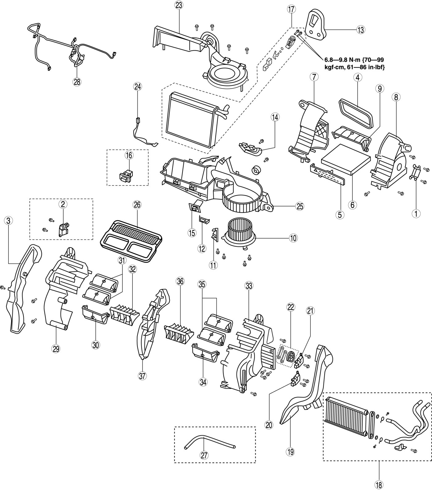 1. Set assemble heater pipes as shown in the figure and then set it to the heater core.