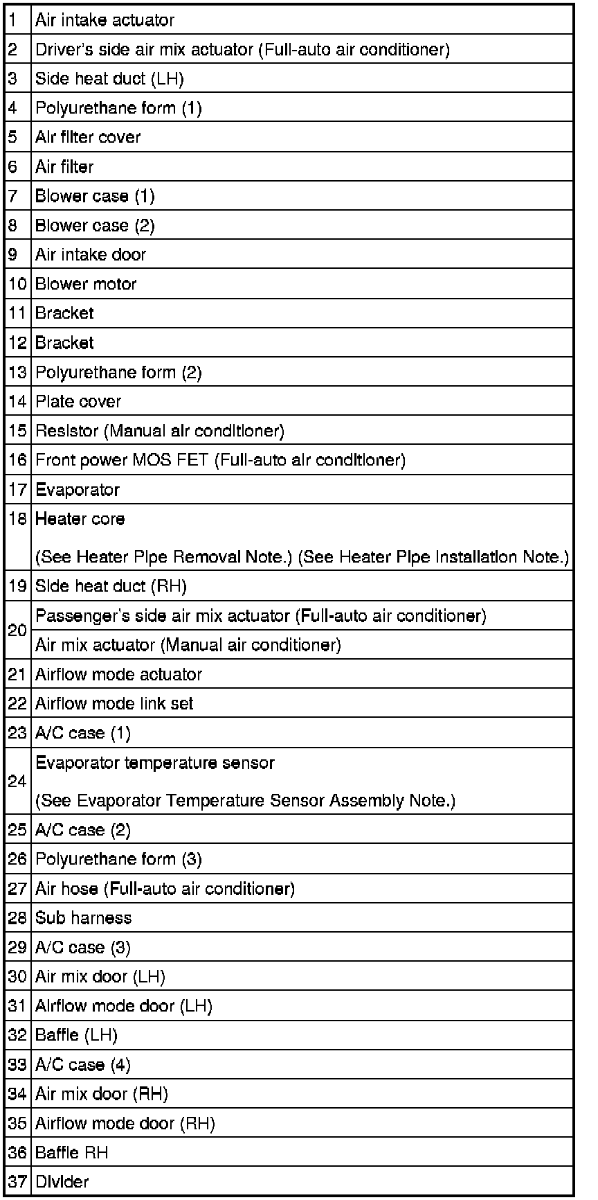 4. Remove the heater pipe and pull the heater core outward and remove it.