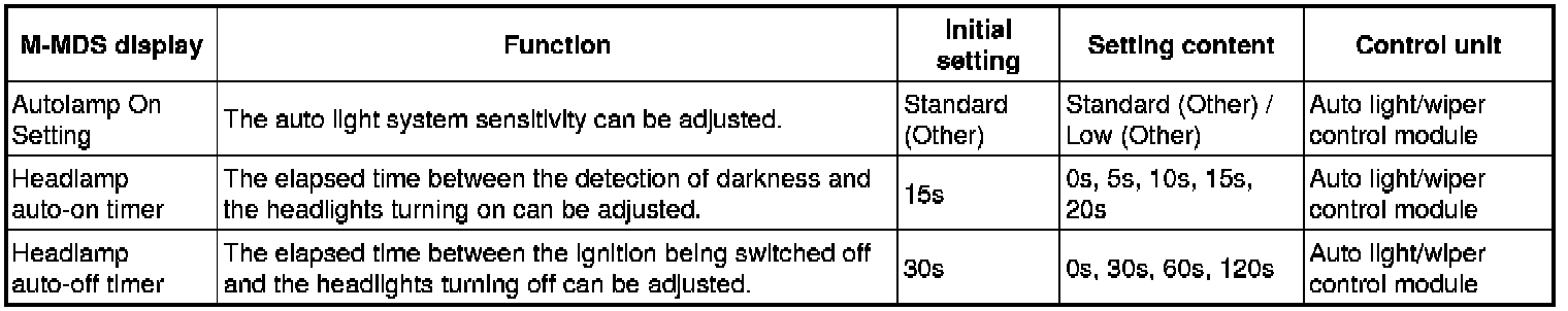 - For the room light control system / turn light system, refer to the control system personalization features setting. Control System Personalization Features Setting Procedure